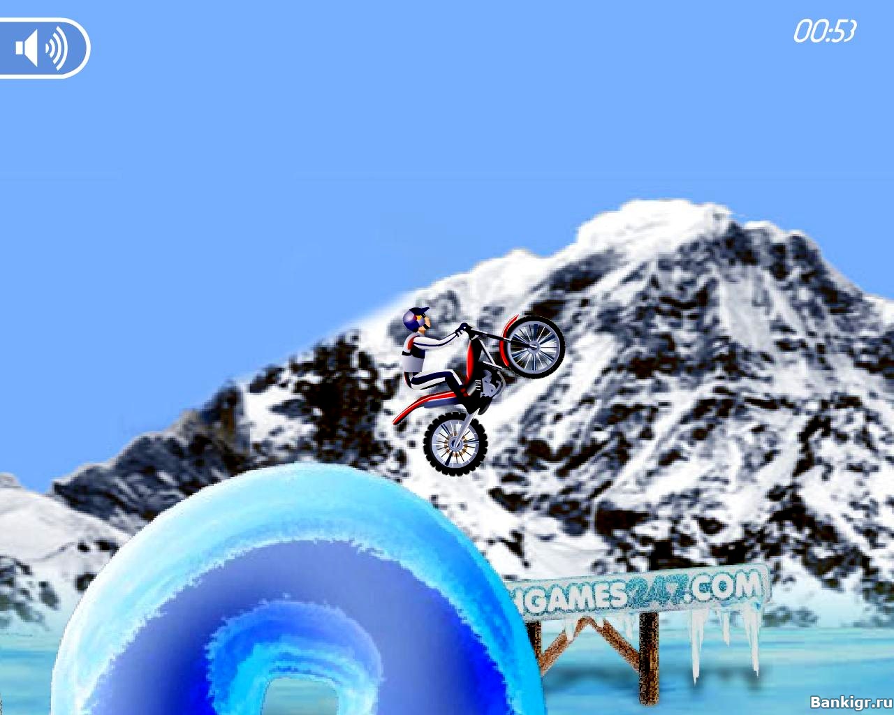 Третья часть мототрилала. В этой части вам нужно преодолевать ледяные препятствия. Удерживайте равновесие, чтобы доехать до конца.
