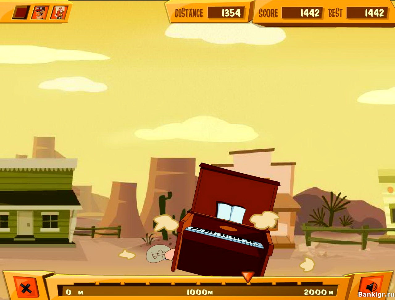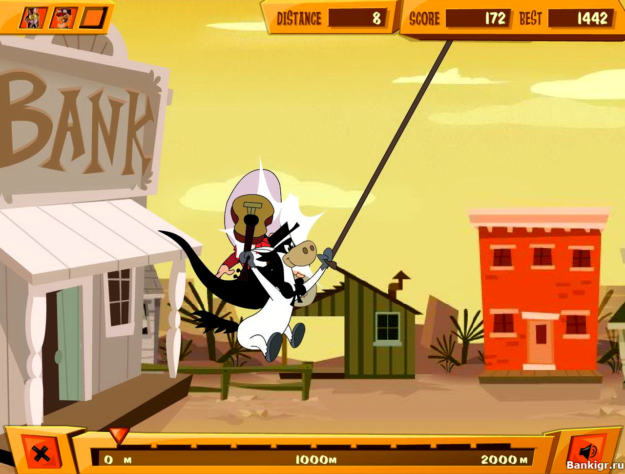 Мультяшные персонажи решили ограбить банк, но кто-то же должен им помешать. Шериф куда-то пропал, но на помощь пришёл неизвестный герой, который выглядит как лошадь, хотя это и есть лошадь. Ваша задача не пустить грабителей в банк, для этого бейте их гитарой со всей силы, чтобы они улетели подальше, желательно прямо в тюрьму.