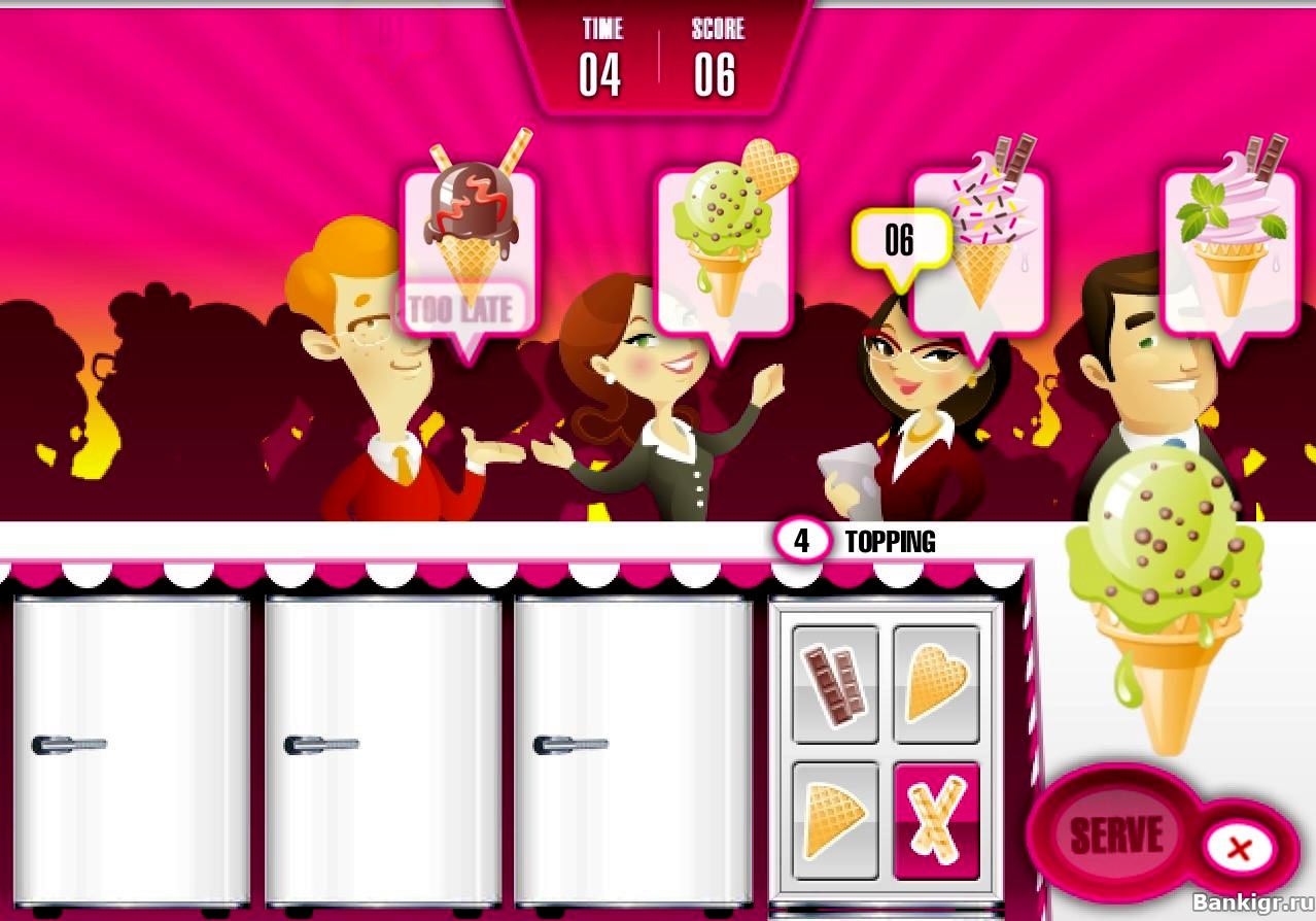 У вас свой собственный магазинчик с мороженным. Приходящие клиенты заказывают мороженное с определёнными ингредиентами, которые вы должны в точности повторить.