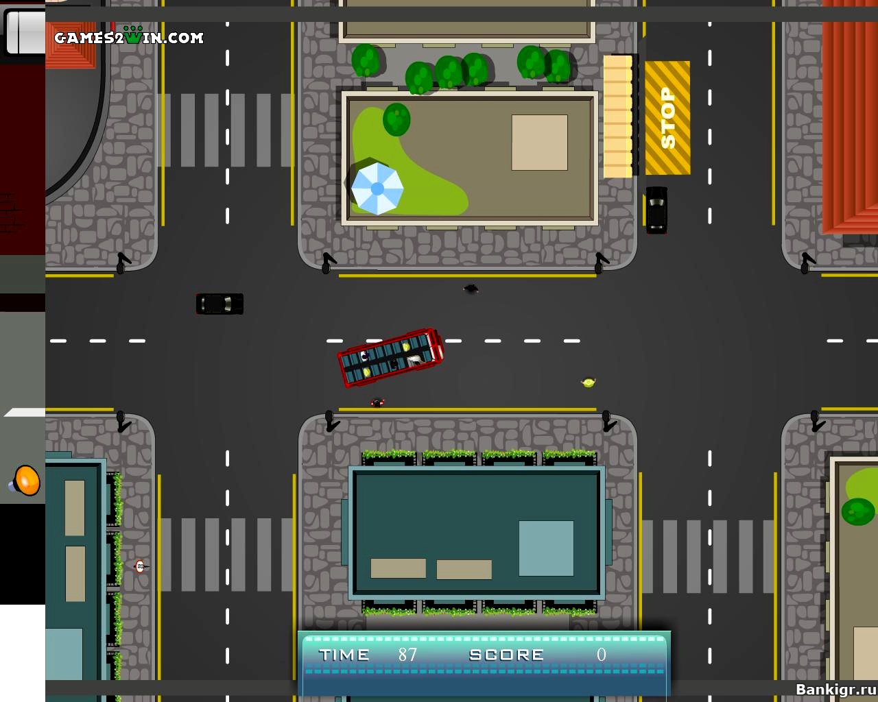 Вы управляете двухэтажным автобусом. Ваша задача доехать до остановки отмеченной на карте. Не задевайте пешеходов и машины. Они не останавливаются, даже если перегородить им дорогу!