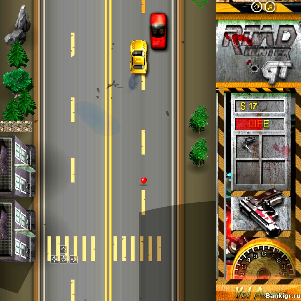 Вы убили таксиста и украли его машину. Ваша задача ограбить банк и скрыться на машине. Во время вашего пути собирайте сердечки, чтобы машина не сломалась.