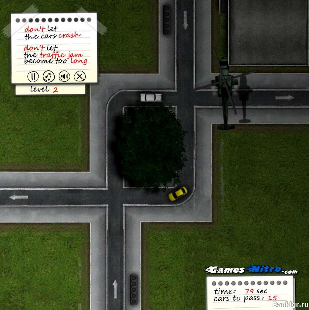 Управляйте движением автомобилей, так чтобы они не врезались друг в друга и не сбивали пешеходов. Для этого вовремя останавливайте машины, чтобы другая машина могла проехать или пешеход пройти, а потом позвольте им ехать дальше.