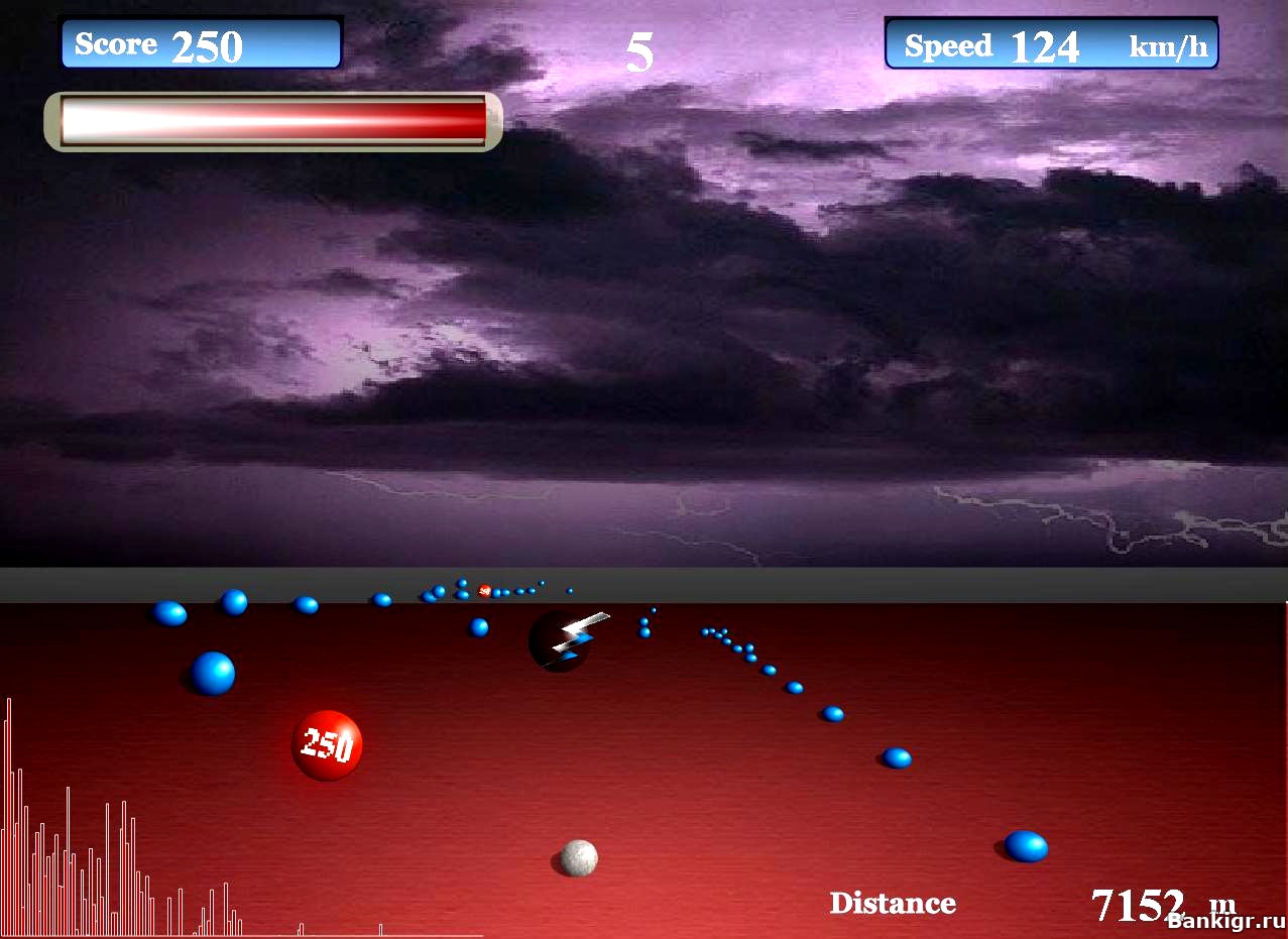 В этой игре вместо машины вам дадут управлять шаром. Во время вашего путешествия по трассе будут встречаться красные бонусы и молнии.